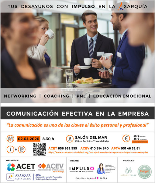 “Tus desayunos con Impulso en la Axarquía” se celebrarán un jueves al mes en diferentes ubicaciones de la Axarquía. El primero de ellos tendrá lugar en el Salón del Mar de Torre del Mar el 2 de abril.